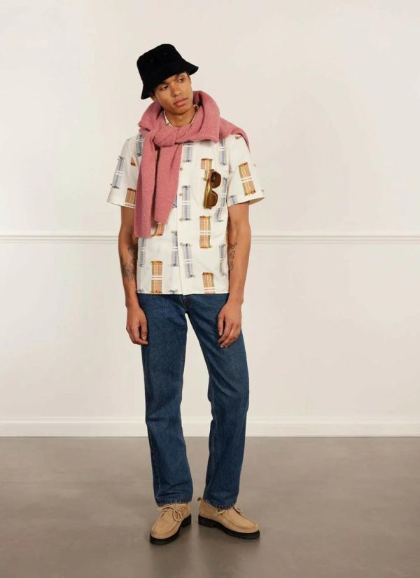 The Ambassador. What is in a name, what is in a picture, this picture worth a thousand words for boss ambassador clerk shirt. You’ll travel, you’ll meet great people, see great wonderous things, you’ll thank this great fitting, slightly oversized shirt for taking you there. Cut in a woven masterpiece of organic cotton, constructed in Portugal. Percvial known for their cuban collar cuban printed shirts now with a new oversized fit, fit.
