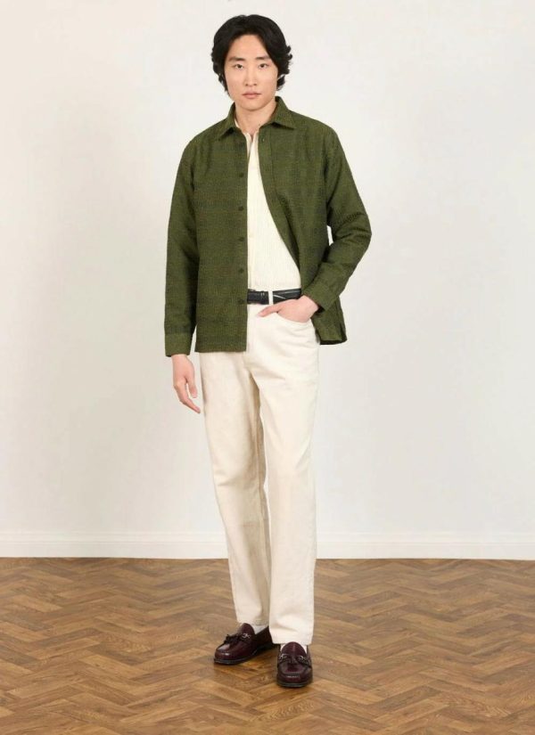 A person walks into an antique shop, they ask, “What’s new” What’s new buddy – Percival AW24 Antique Moquette shirt. Quality Italian fabric, cut and constructed in Portugal. The shirt of the season, a textural delight, sure to start conversation participation.