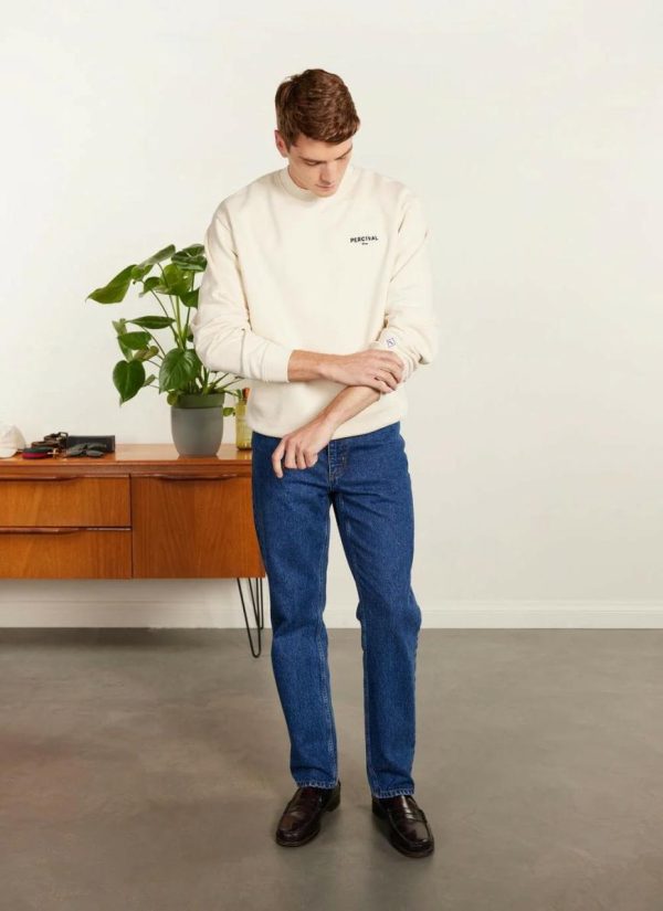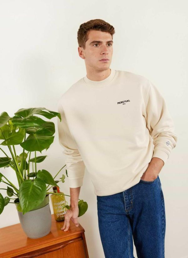 Our popular Percival heavyweight organic cotton sweat. A perfect summer Ecru colour, suitable for any season. Ease of wear and styling and comfort. Comfort in quality 450g heavy weight organic cotton made in Turkey jersey. Classic fit, cut just on the waist with quality rib on hem and cuff.