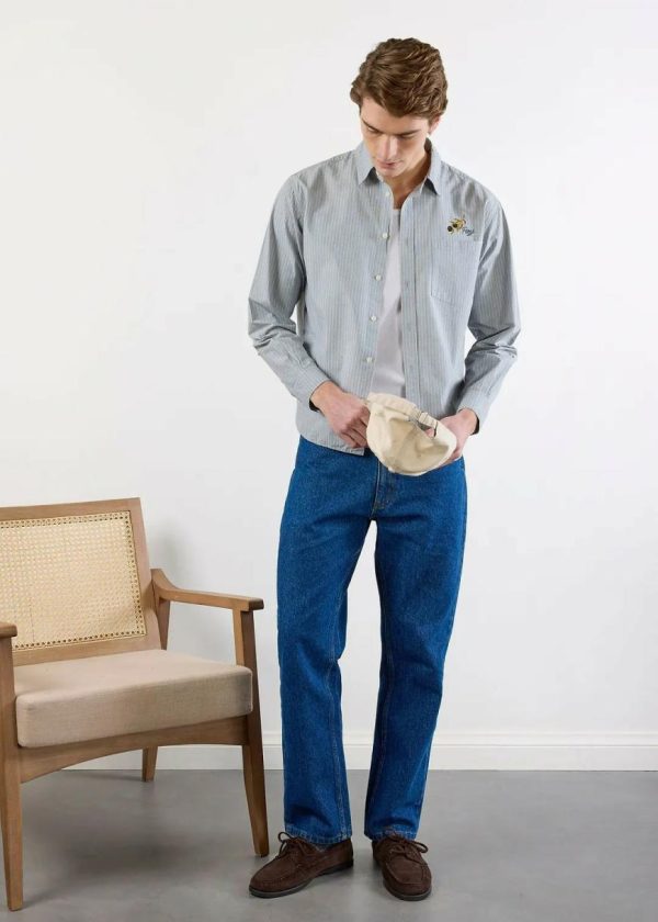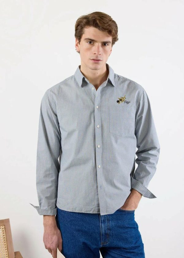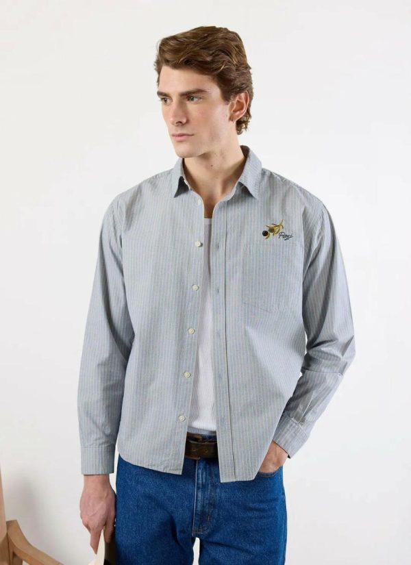 Men Bari Pearce Shirt | Cotton | Blue Stripe | Percival Boxy Shirts