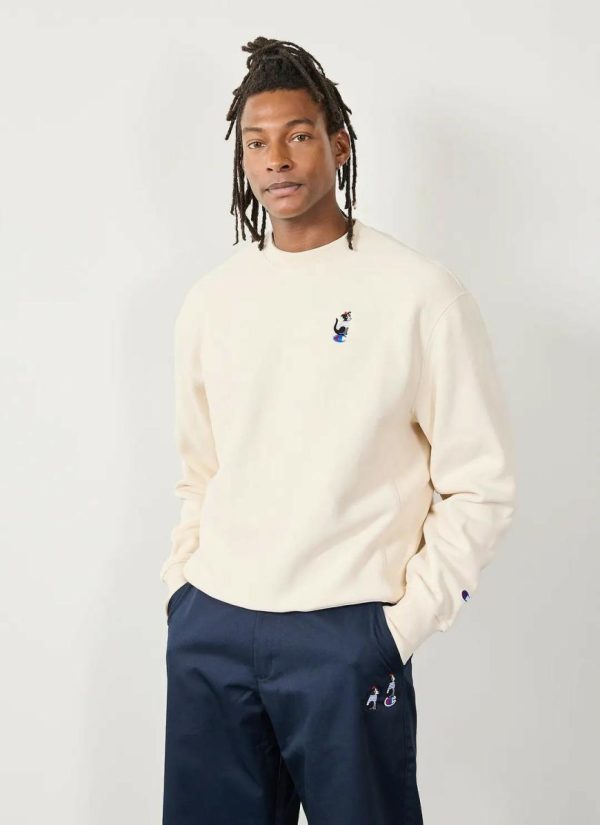 - Features: Men’s crewneck sweatshirt in cream, crafted from a reverse weave. Finished with mystic hands embroidery, this relaxed fit hoodie is a must have for every guy.