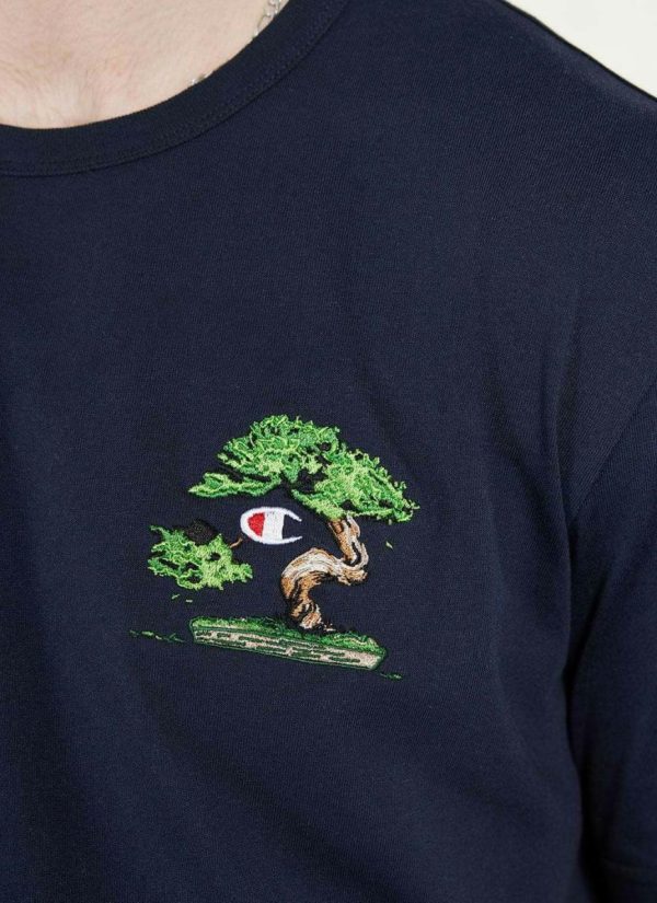 - Features: Men’s short sleeve t shirt with bonsai and champion embroidery. Made from a 180 gsm premium cotton, this navy champion t shirt is ideal for warm weather.