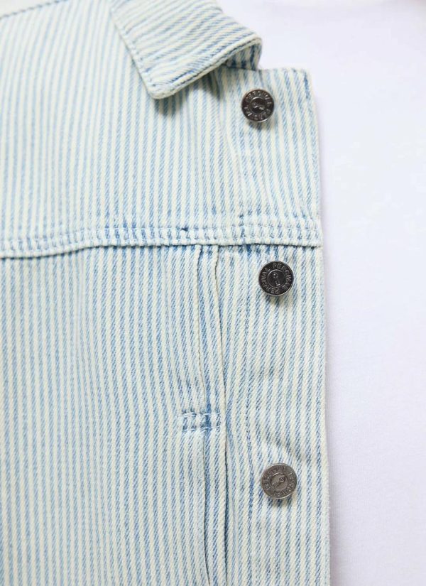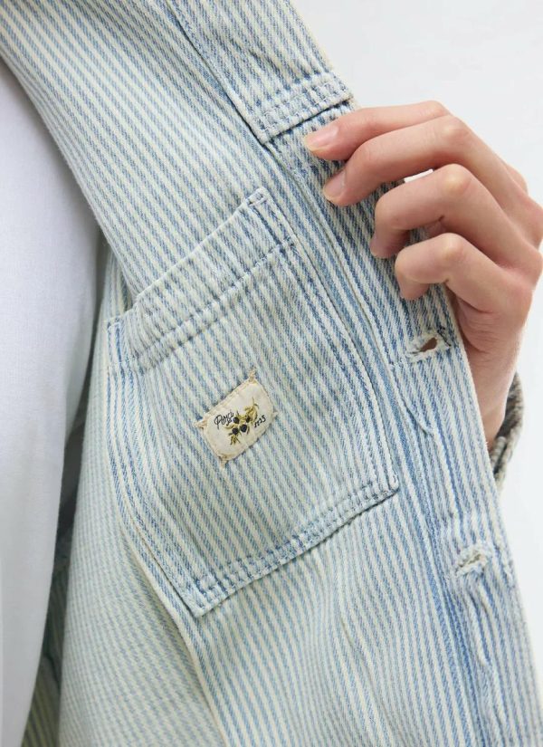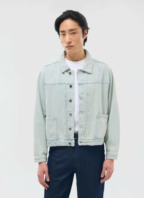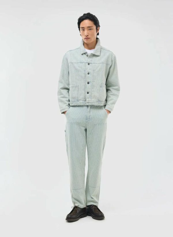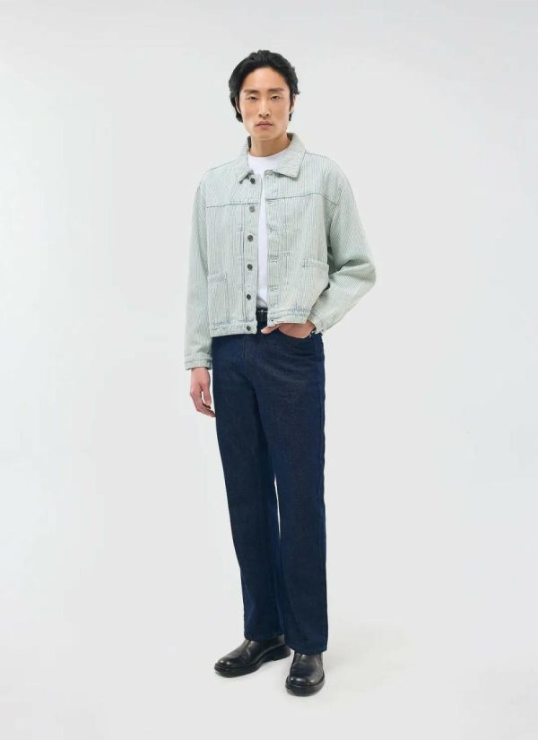 - Features: Men’s Denim Jacket in Light Wash Hickory Stripe. This vintage-inspired piece features custom Percival buttons, pleated details at the chest, and a shank front with chest pocket closure. Designed with a cropped fit, this timeless classic is perfect for layering and can be worn all year round. Complete the look with the matching Bormio Carpenter Jeans.