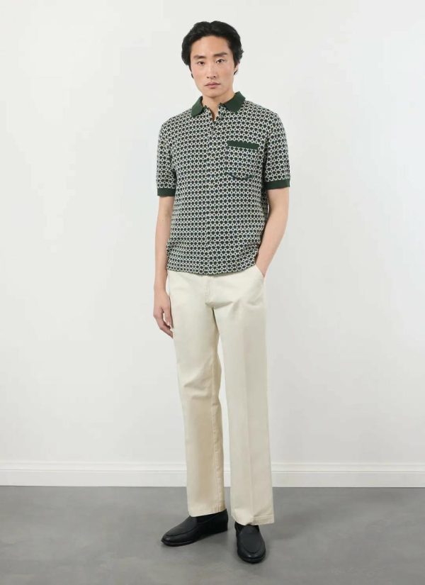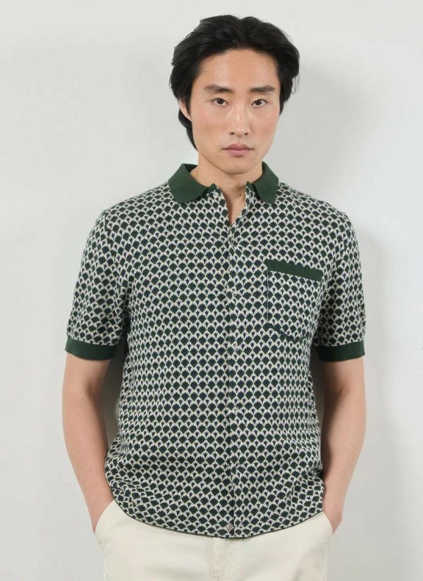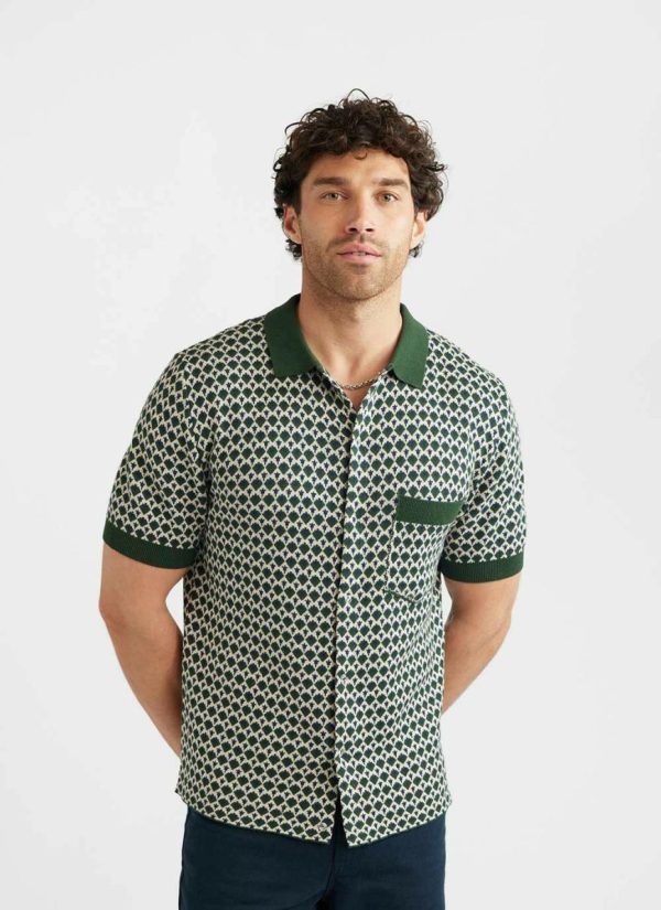 - Features: Men’s Knitted Shirt with Short Sleeves, Collar and Front Pocket in Jacquard Print
