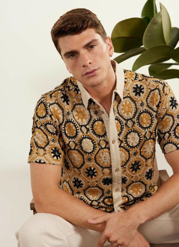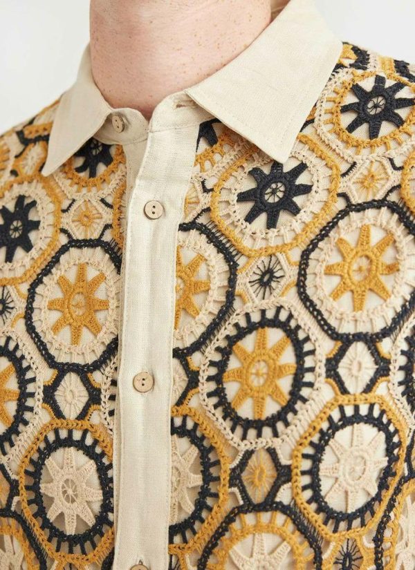 - Features: Men’s crochet shirt with short sleeves. Made from 100% linen and with corozo buttons, this crochet shirt is ideal for spring and summer months.