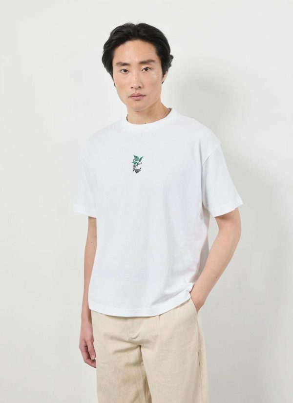 - Features: Men’s oversized white T Shirt made from 100% organic cotton. Finished with intricate fern embroidery at the centre front, this embroidered T Shirt is perfect for everyday wear.