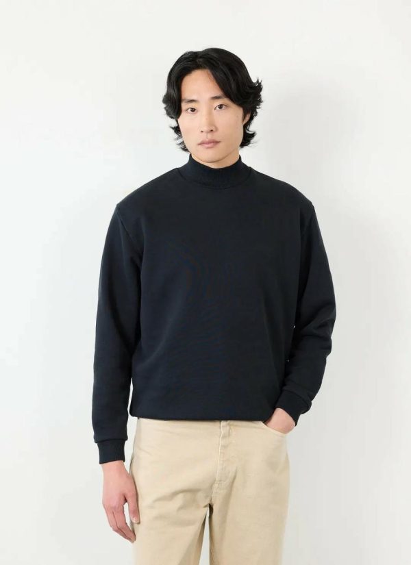- Features: Men’s black mock neck sweatshirt featuring subtle tonal details. With tonal embroidery at hem, this cotton sweatshirt is a versatile wardrobe staple you’ll wear on repeat.