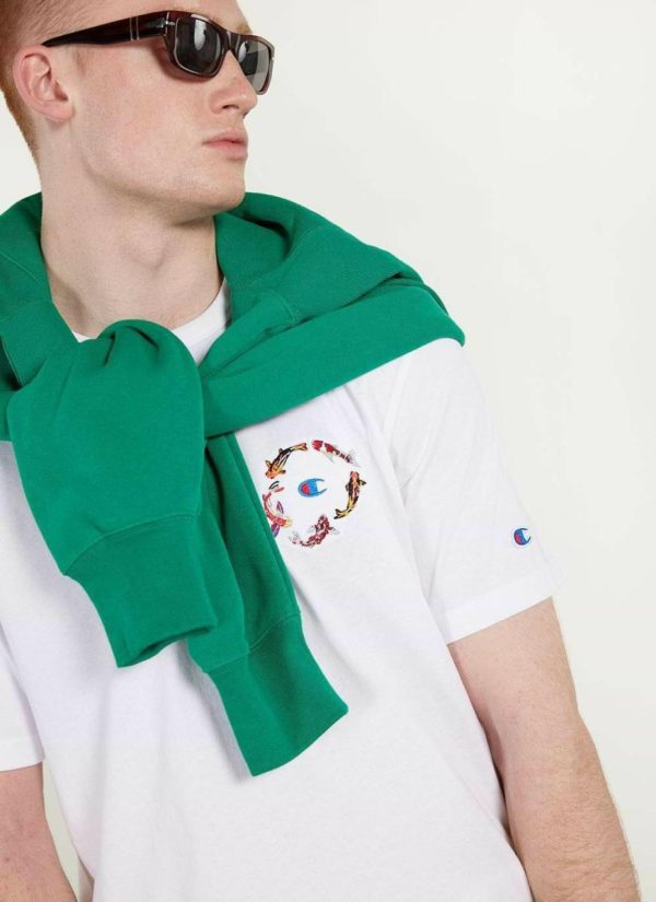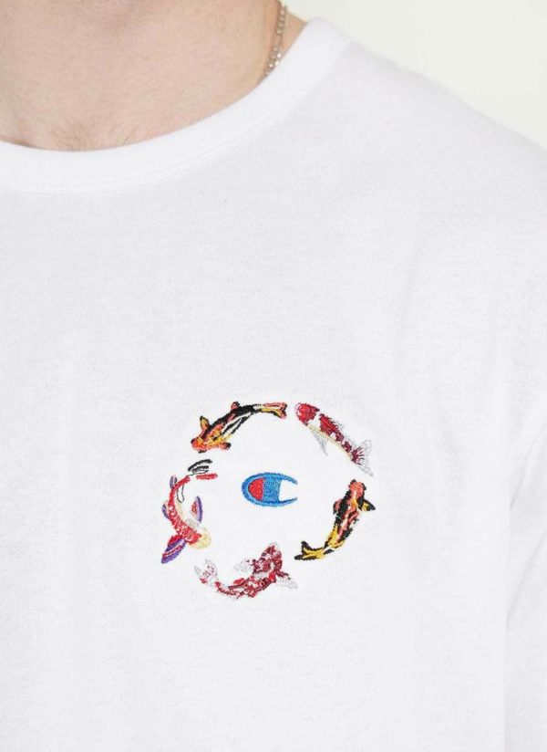 - Features: Men’s short sleeve t shirt with koi carp and champion embroidery. Made from a 180 gsm premium cotton, this white champion t shirt is ideal for warm weather.