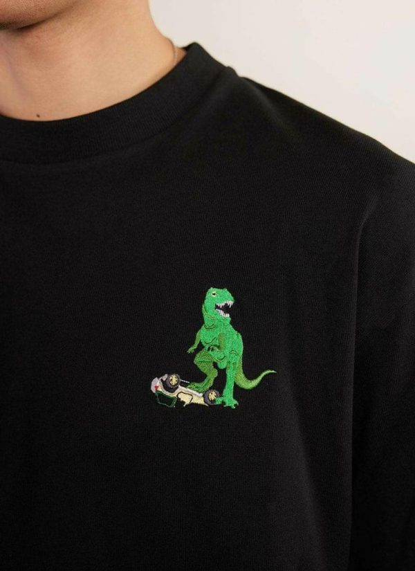 Men Large Theropod Oversized T Shirt | Embroidered Organic Cotton | Black | Percival T-Shirt & Hoodie Bundle Deal