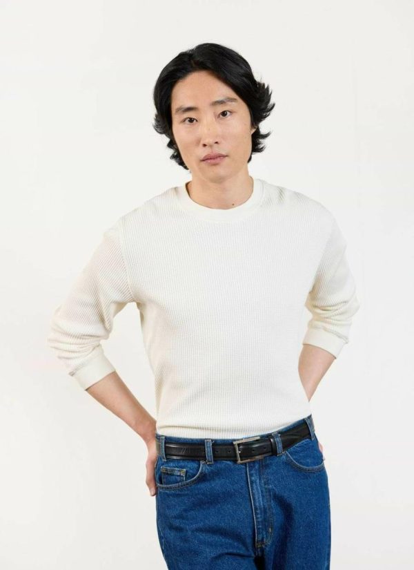 - Features: Men’s long sleeve t shirt made from a 100% organic cotton in a premium waffle fabric. Ideal for casual days, this cream t shirt is a must-have for those who appreciate understated style.