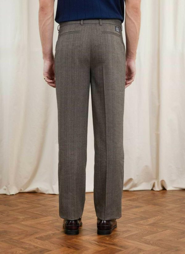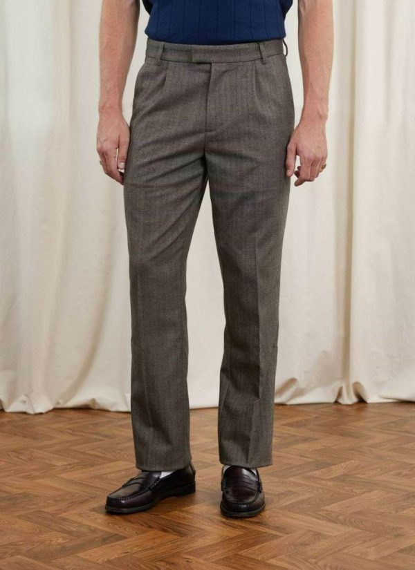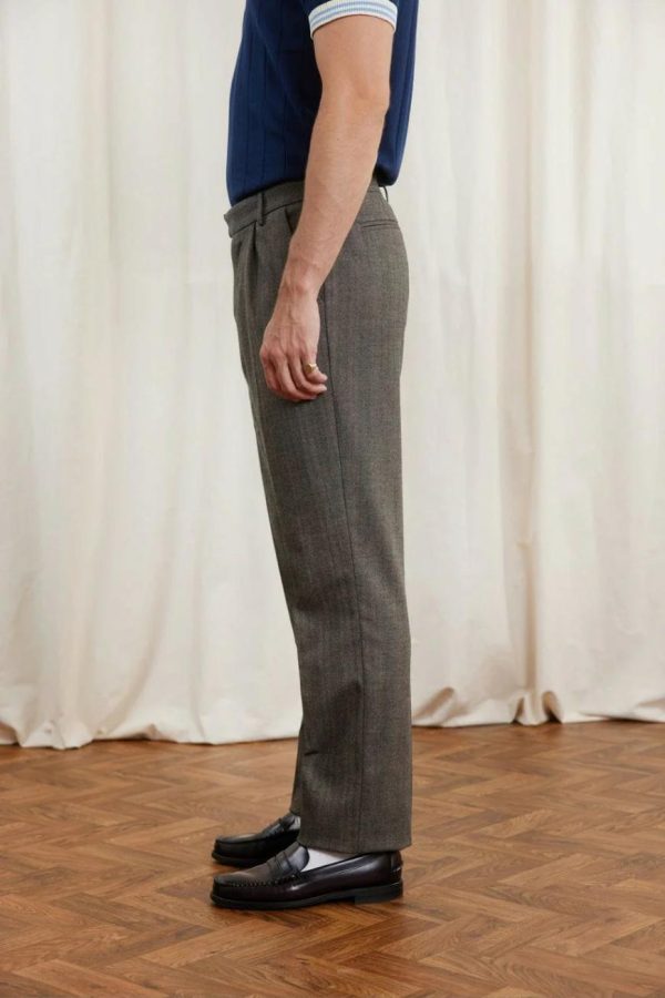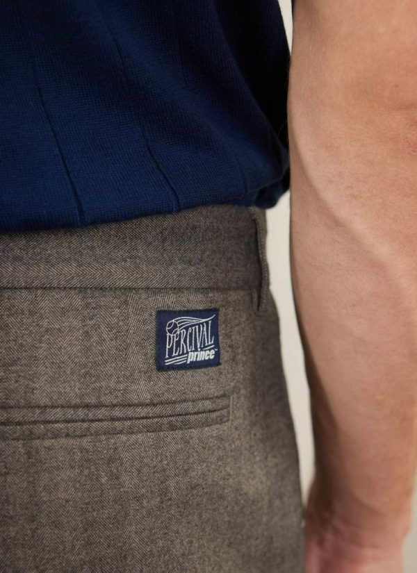 - Features: Men’s tailored trousers with front pleated detail. Finished with a branded collaboration label, engraved branded faux horn buttons, and pockets, these grey pleated trousers are ideal for a comfortable and polished tennis look during the summer months.
