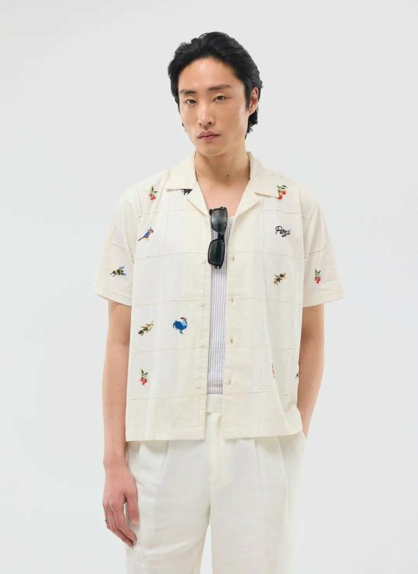 - Features: Classic cuban camp collar shirt, made in limited quantities, with hand illustrated embroidery artwork throughout. Made from a lightweight cotton, easy to wear summer staple.