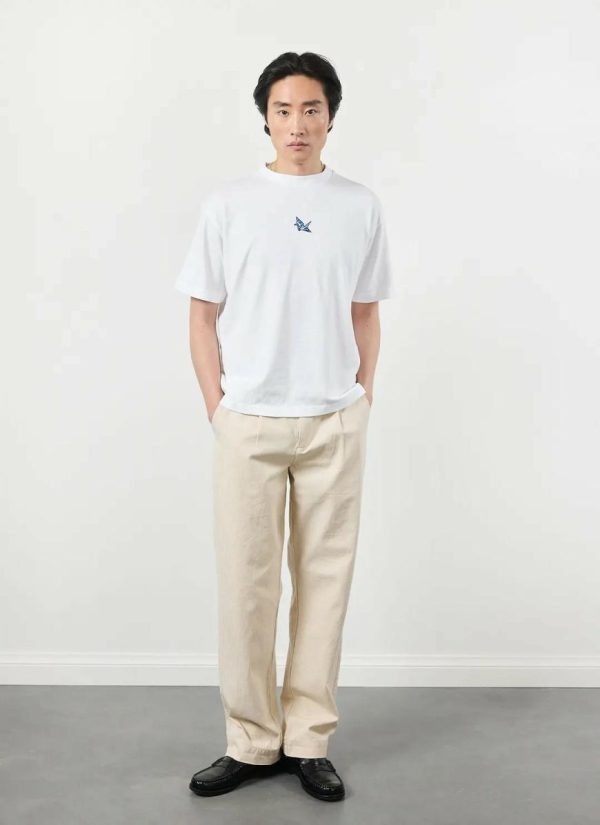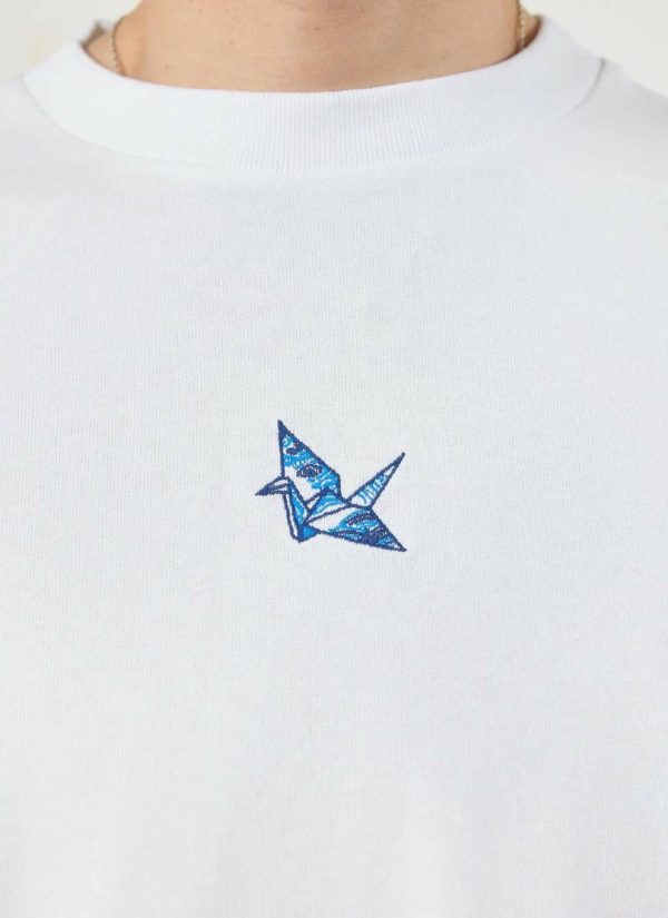 Origami, you know it, I know it, that paper paper paper. The Orizuru, or “folded crane” is one of the most popular designs, here adorning a quality Percival t-shirt. In Japanese culture the crane represents happiness and long life. Cheers to that.