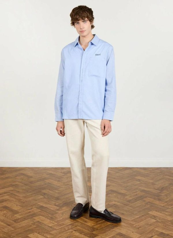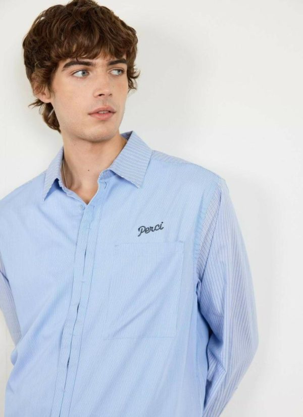 Men Patchwork Stripe Pearce Shirt | Cotton | Blue | Percival Boxy Shirts