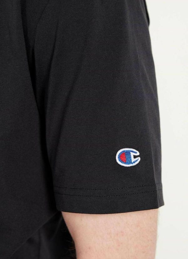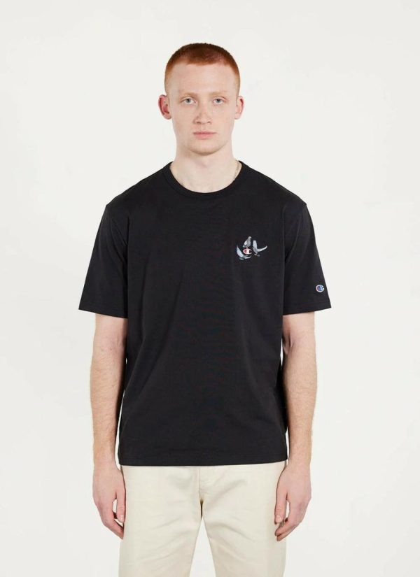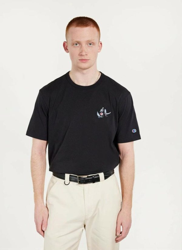 - Features: Men’s short sleeve t shirt with pigeon and Champion embroidery. Embroidered by Percival in London on a 180 gsm premium cotton, this black champion t shirt is ideal for warm weather.