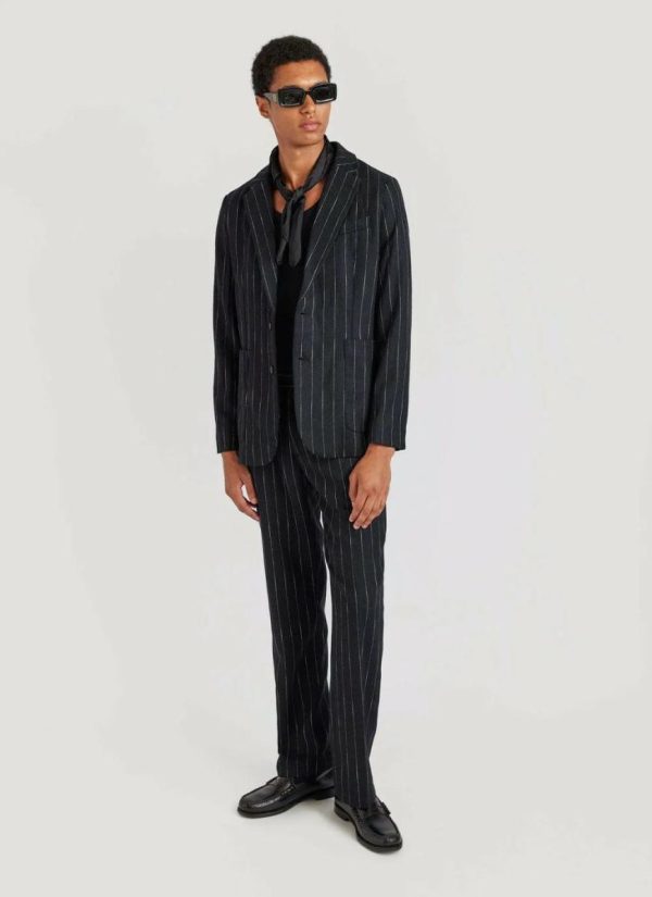 Blazer, the term first appeared in 1952 in an article that referred to a red jacket in a bright, or a ‘blazing’ red colour. Percival Tailored Blazers then, blazing. Maybe not in red. A fine designer tailored Blazer in a blazing pinstripe. Perfect for pairing with the matching pinstripe trouser, it is a suit after all, or pair with jean, or a 5 pocket trouser – intelligent gent casual, or size up for an oversized blazer blaze look. You do you.