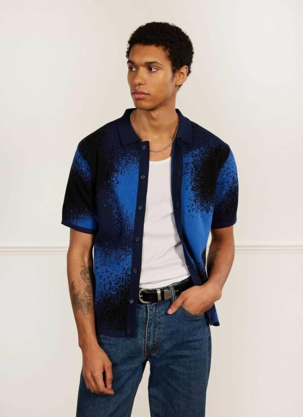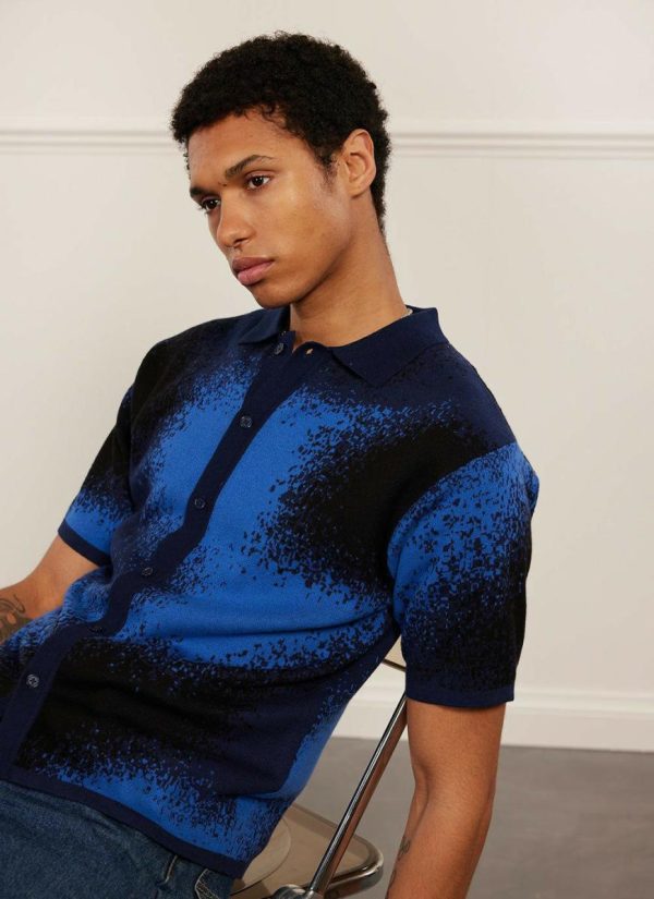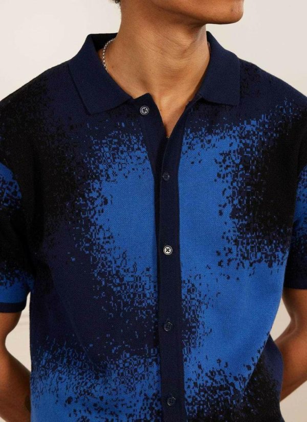 - Features: Men’s knitted shirt made from 100% cotton. In a double bed custom jacquard design and with a rib on placket and collar, this knitted shirt is a spring wardrobe staple.