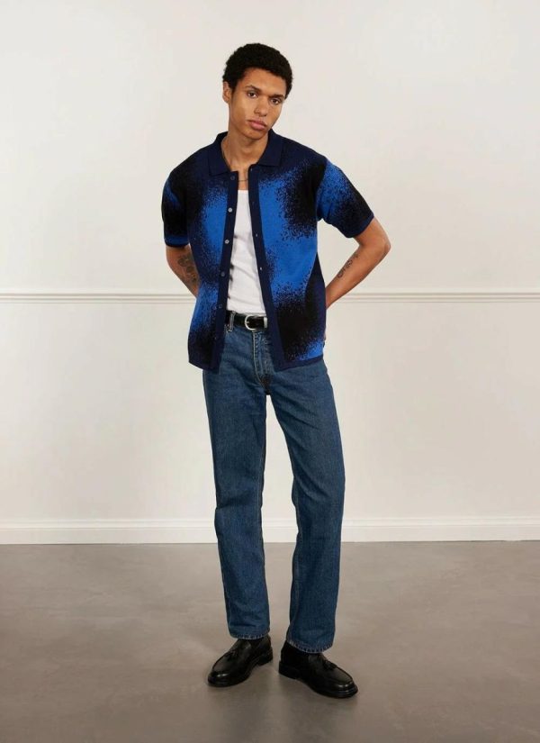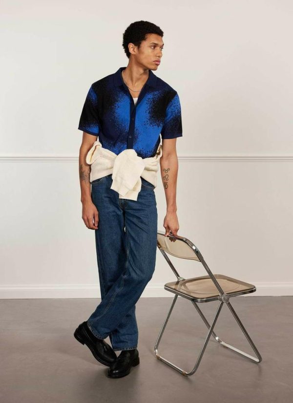 Saturn dye summer knit shirt. Lucky you. SS24 newness, treat yourself, tonal ombre knit patchwork, great summer piece perfect for spring layering, open on top of a tee or vest or under and over shirt. Part of the Percival spring summer Tuck Shop collection, a collection referencing some of the finer things in life, snacks, sweets, fruit sours, all the treats including summer knit shirts.