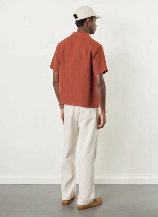 - Features: Men’s Cuban Shirt made from 100% Linen in Rust. The Cuban Collar Shirt features short sleeves, coconut buttons, and increased body widths for a looser, comfortable fit. Percival’s Red Linen Shirt is ideal for the spring and summer months.