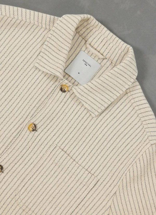 - Features: Men’s Linen Shirt in Ecru Cream, designed with a utilitarian edge. Crafted for modern style and function, the overshirt features custom Percival buttons, patch pockets, an SS25 sleeve label, and a breast patch pocket. This versatile long sleeve shirt is perfect for layering and effortless everyday wear.