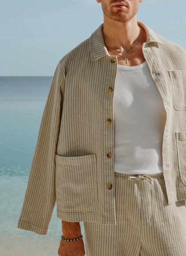 Sorrento linen Overshirt. An overshirt come shacket that can be worn, in or around Sorrento or wherever you want to wear it. There is a full co-ord cool dude look, made in a spicy Sorrento easy breezy linen blend. Game set match, whatever. Best dressed yes. Quality cotton linen yarn dye stripe.