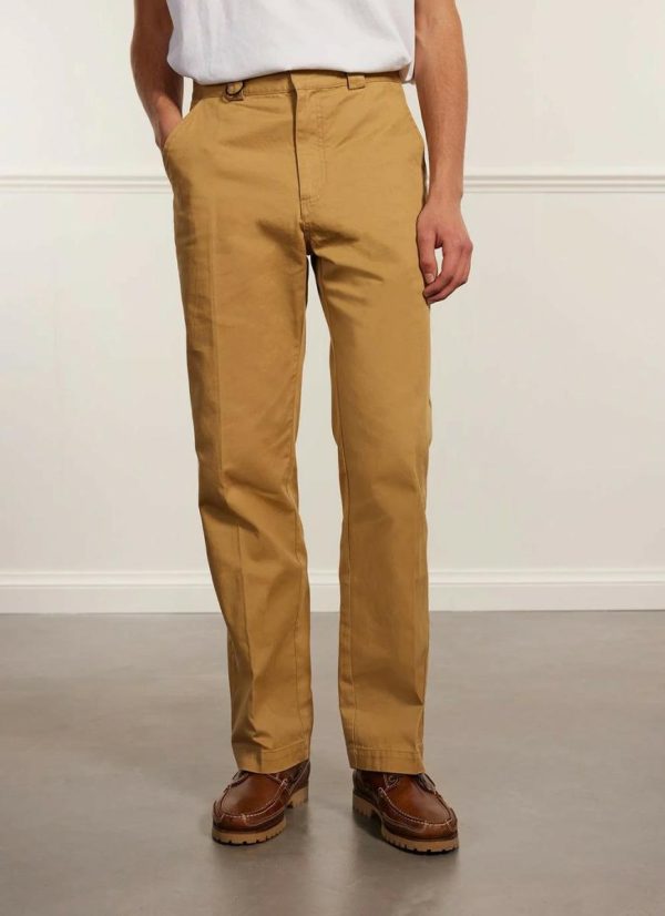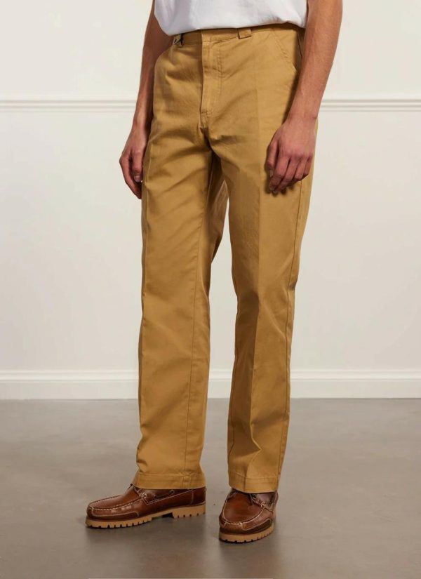 Trousers are part of a routine. These the stay press trousers, made in a heavy weight cotton twill with heavy starch spray, an ideal piece as part of an office uniform. Home to the office, to where ever you take you.