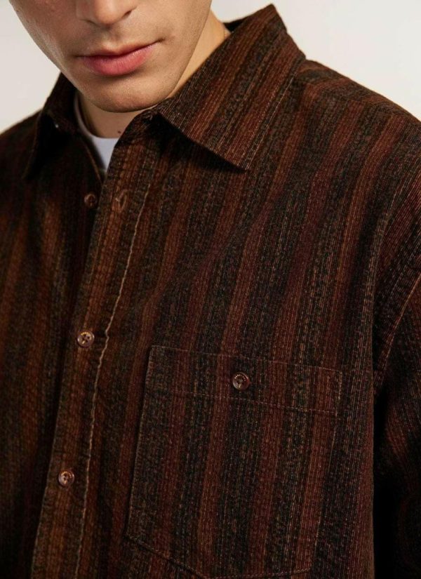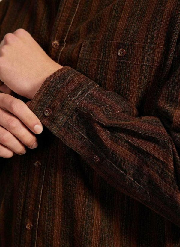 Percival oversized shirts, we’ve increased the size of our classic shirt for a slightly oversized fit, with a dropped shoulder and longer length front and back, it is oversized remember. Layer on top of Percival embroidered tees, or under winter warmer coats. A somewhat effortless throw on classic comfort, cut in a limited edition stripe cord.