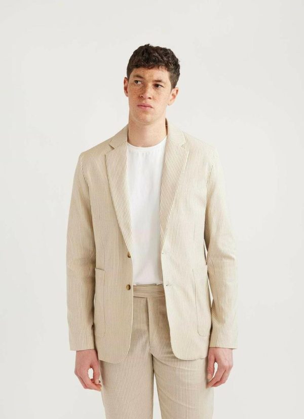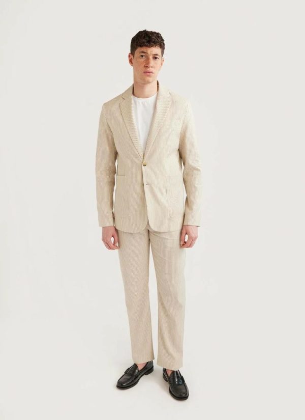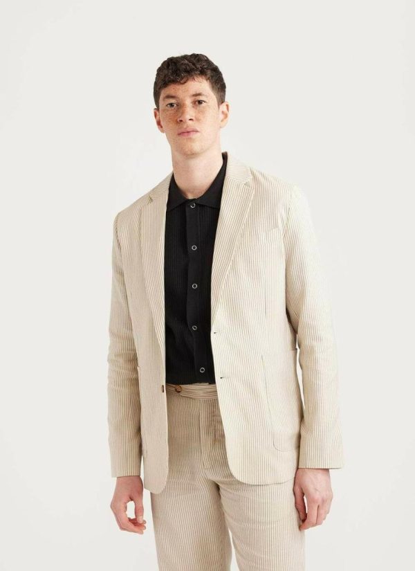 - Features: Men’s Striped Blazer finished with breast and internal pockets and button fastening, this Stripe Suit Jacket is perfect for Summer Suiting, Weddings or Smart Dressing.