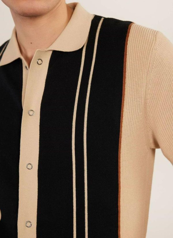 - Features: Men’s knitted shirt with short sleeves. Finished front pockets, popper fastenings and in a standard fit, this Knit Shirt is a summer wardrobe staple.