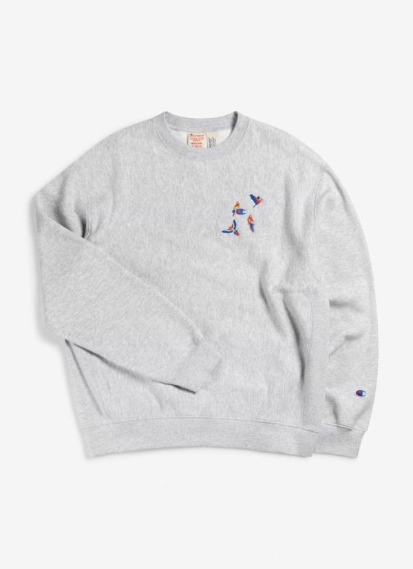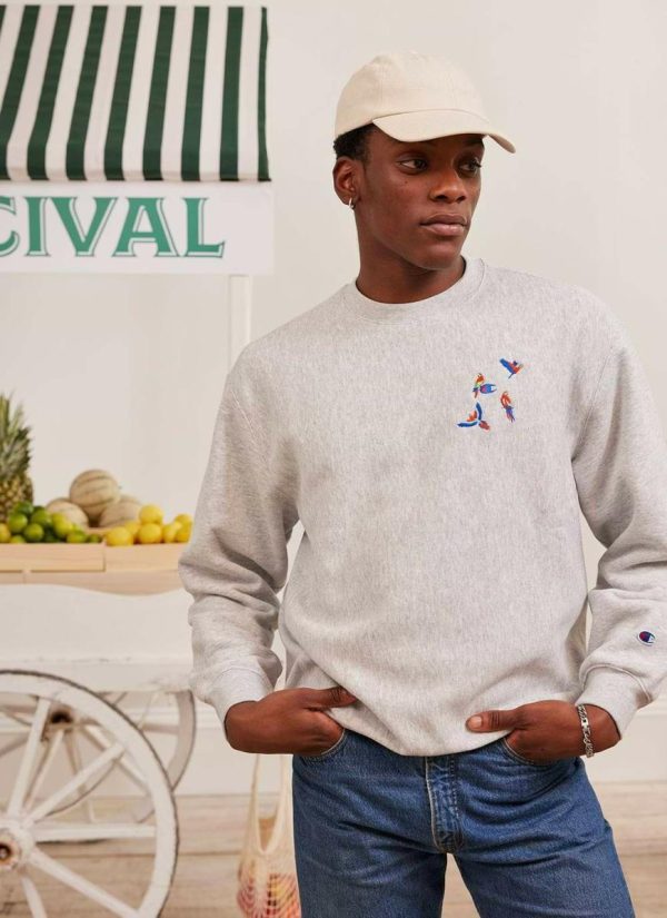 Part of the Champion and Percival autumn winter collection – the Menagerie hoody with embroidered parrot details of course. A menagerie is a strange or diverse collection of people or things. Nothing strange about these winter warmer heavy weight reverse weave Champion x Percival hoodies, track pants and tee shirts. Intricate hand drawn illustrations, digitised then embroidered onto a quality hoodies, sweats available in limited quantities. Fine feathers make fine birds.