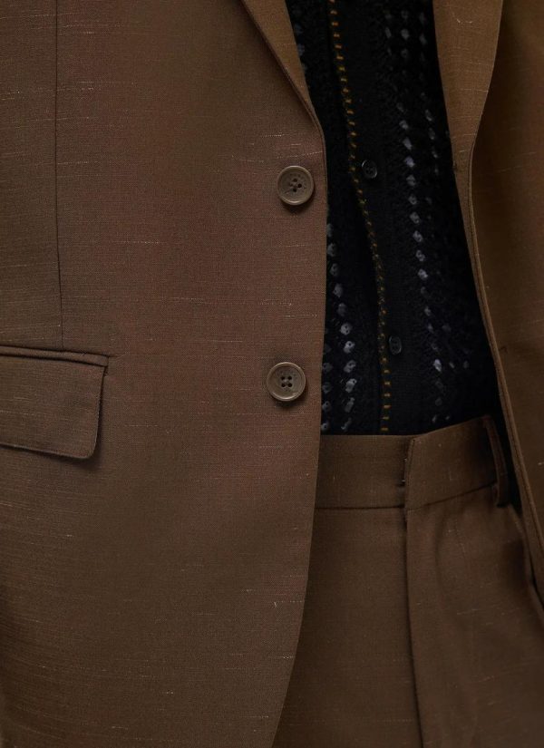 - Features: Men’s Wool Blazer in Brown, crafted from a lightweight wool blend that is breathable and temperature-regulating. This Tailored Suit Jacket comes in a smooth espresso brown colourway for a classic look, featuring a tailored fit with soft tailoring, a quarter lining at the back, contrast stripe lining, internal welt pockets, and intricate internal embroidery detail. Perfect for weddings and smart dressing, our Brown Blazer is a versatile piece that can be worn all year round.
